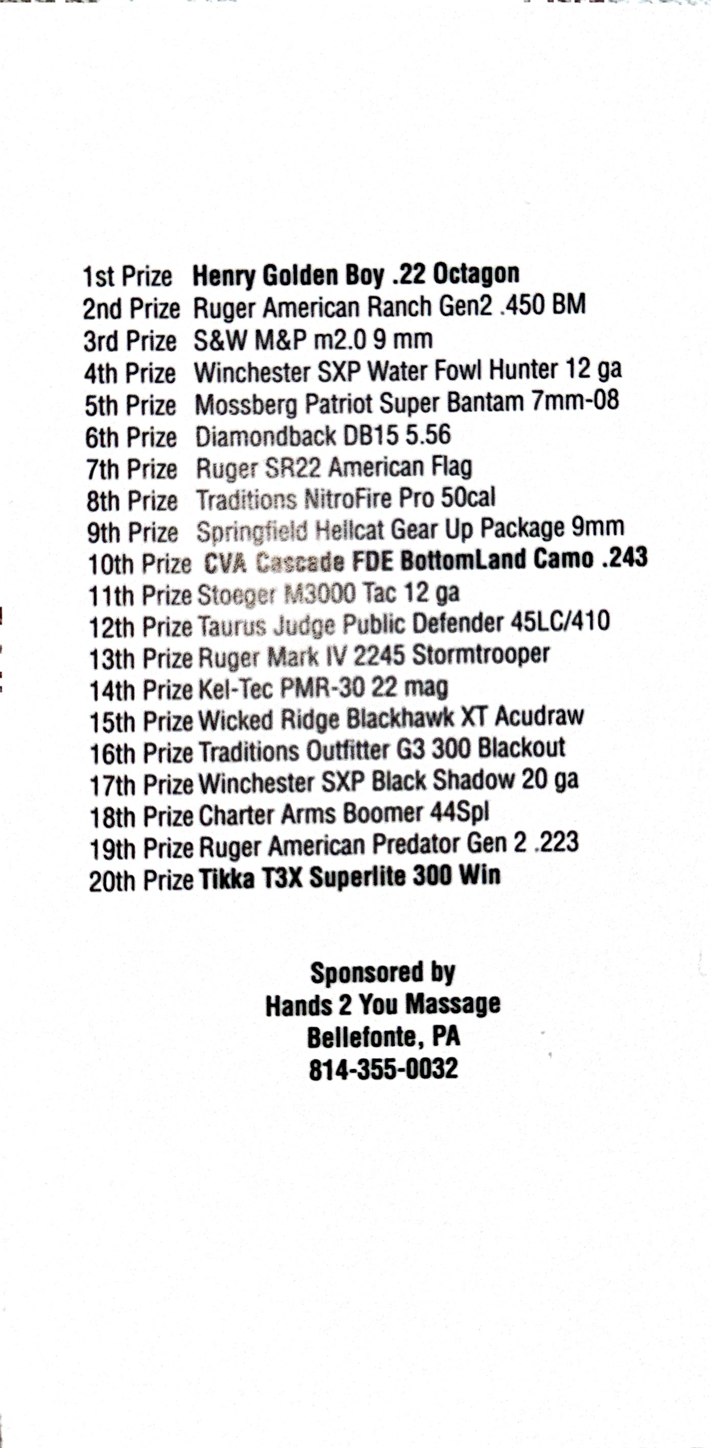 Tickets and Prizes are NOT transferrable. Winner is responsible for PA Background Check. Prizes not claimed within 60 Days become property of the Undine Fire Company.